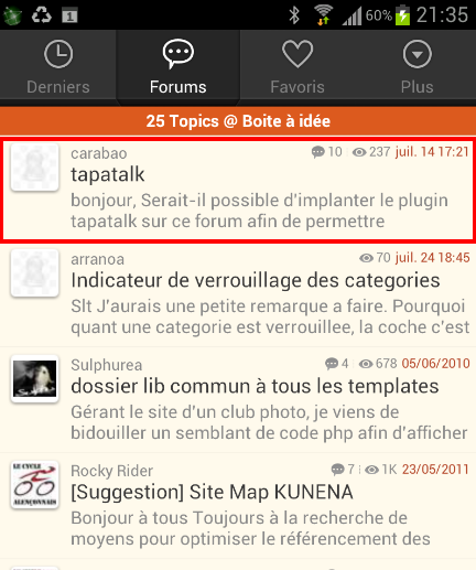 Si je comprends bien, et il est 4h50 du matin, le plugin était déjà installé sur le forum depuis longtemps ? Si c'est le cas, étonnant car j'avais plusieurs fois fait des recherches avec l’application tapatalk sans trouver le forum.